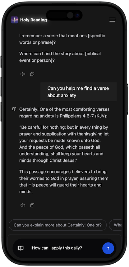 Dive deeper into the Bible with intelligent, instant answers to your questions.